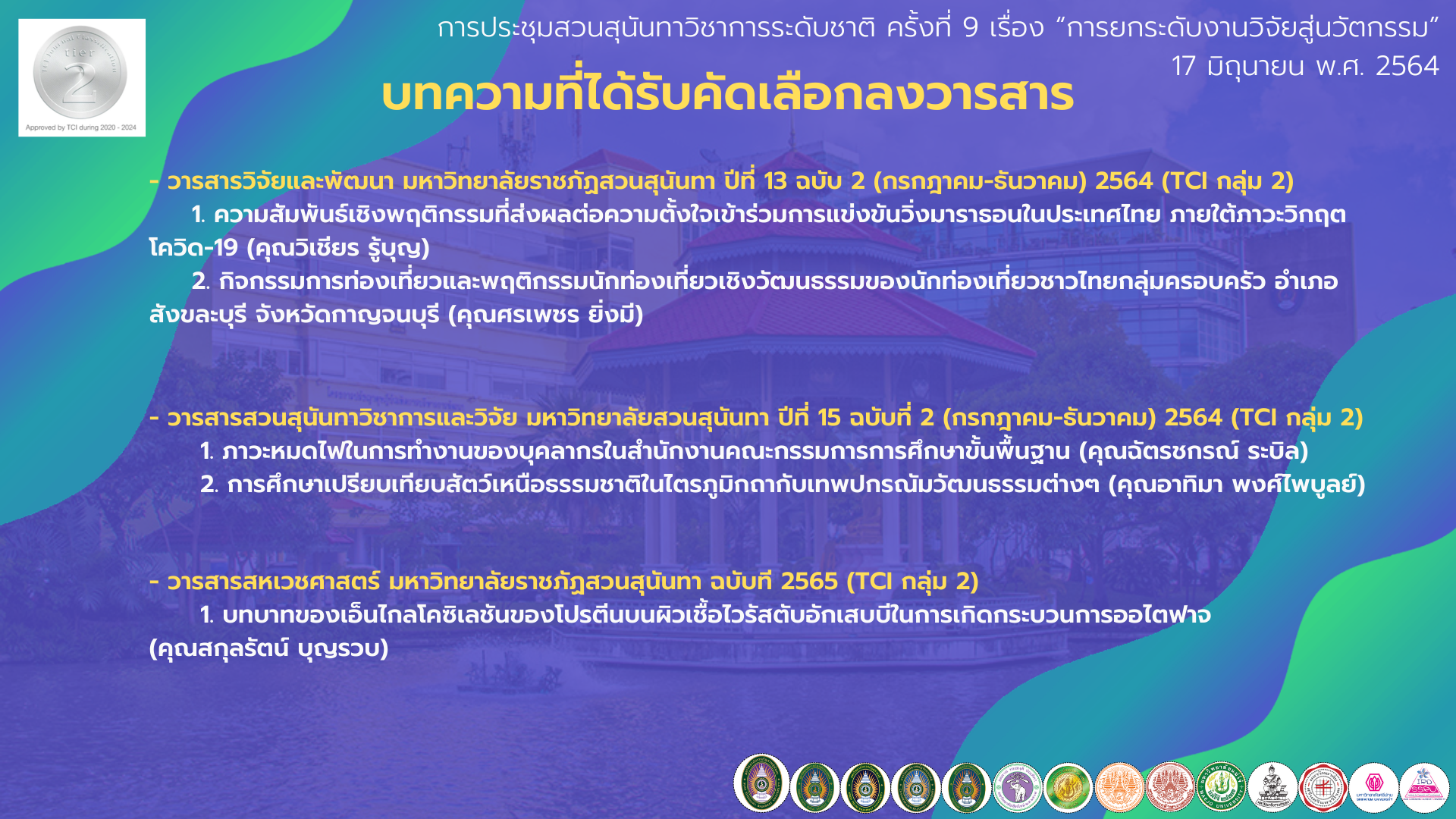 การประชุมสวนสุนันทาวิชาการระดับชาติ ครั้งที่ 9 เรื่อง “การยกระดับงานวิจัยสู่นวัตกรรม”